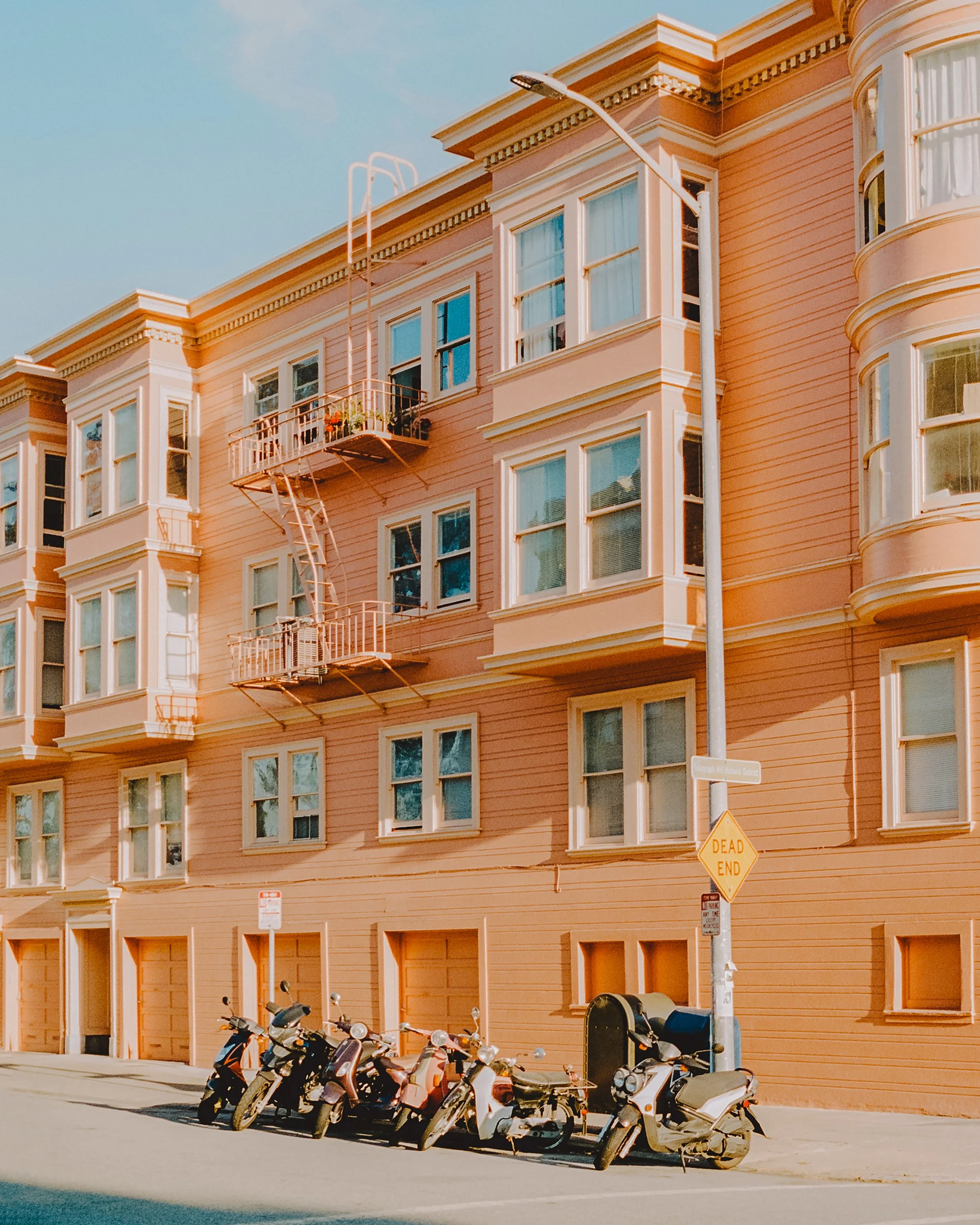 Most days in the neighborhood are bathed in sunlight with the thick SF fog repelled by Russian Hill. The sun highlights the iconic Victorian architecture that characterizes the North Beach aesthetic, spilling light into the old Italian cafes.