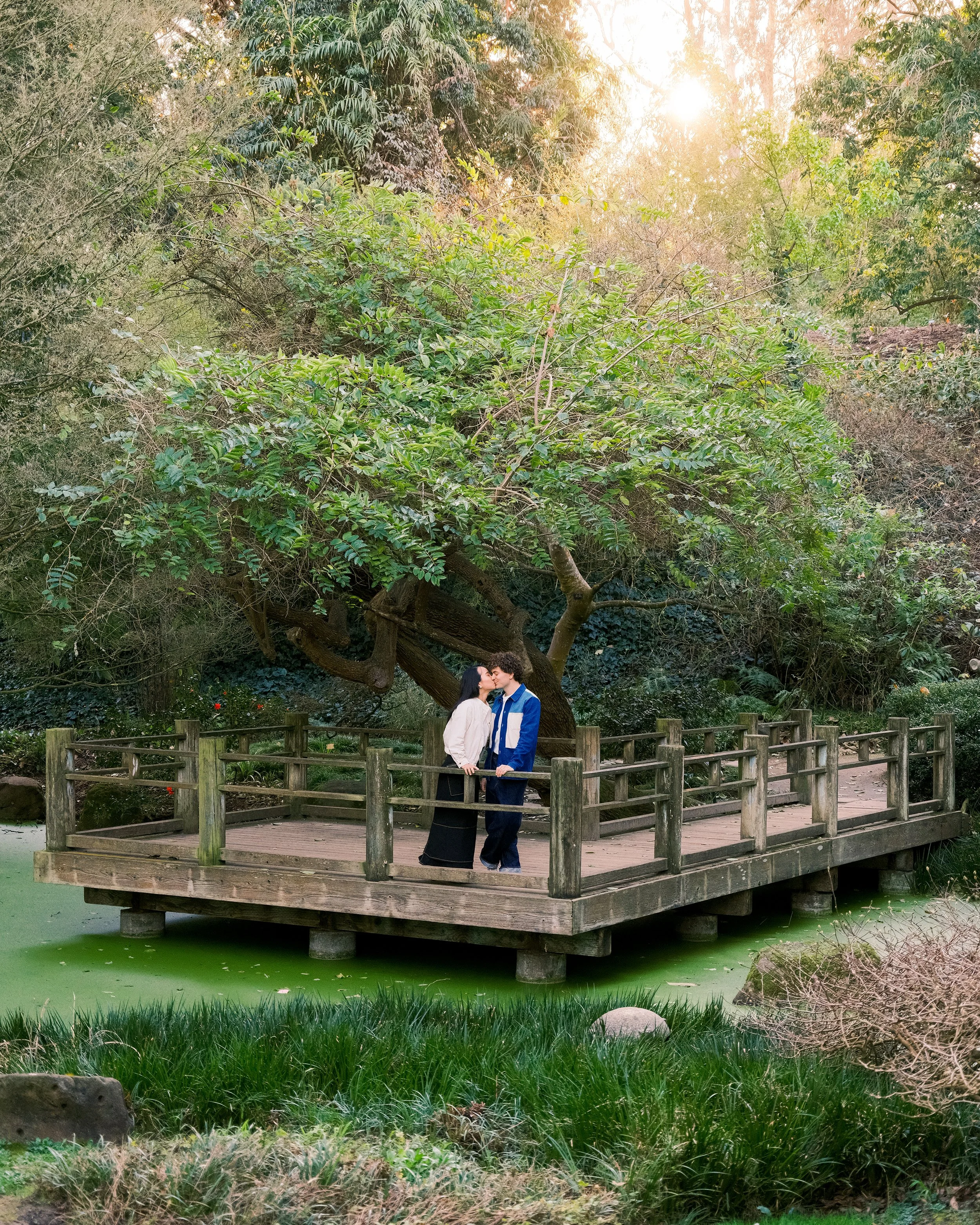 Situated within Golden Gate Park, the San Francisco Botanical Garden spans 55 acres and boasts a diverse collection of plants from all over the world. From the vibrant greens of the Moon Viewing Garden (pictured above) to the tranquil ambiance of the Great Meadow, the garden offers a variety of beautiful backdrops to choose from. Its varied landscapes are perfect for a range of themes—whether you’re aiming for a whimsical, romantic, or casual vibe.