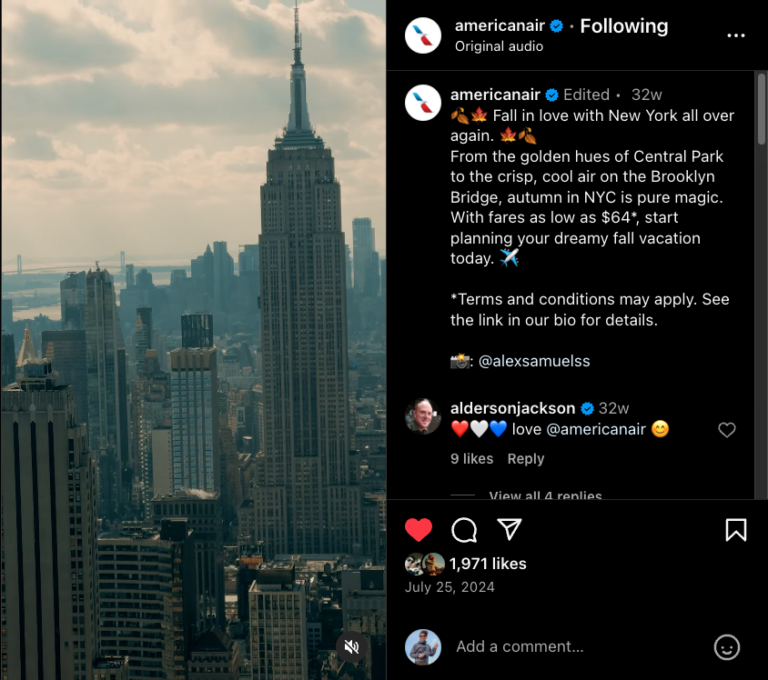 Joining AA’s Fall Creator Campaign, I took on a dual role as both a UGC creator and campaign advisor, developing content and strategic insights to enhance AA’s travel advertising efforts.
