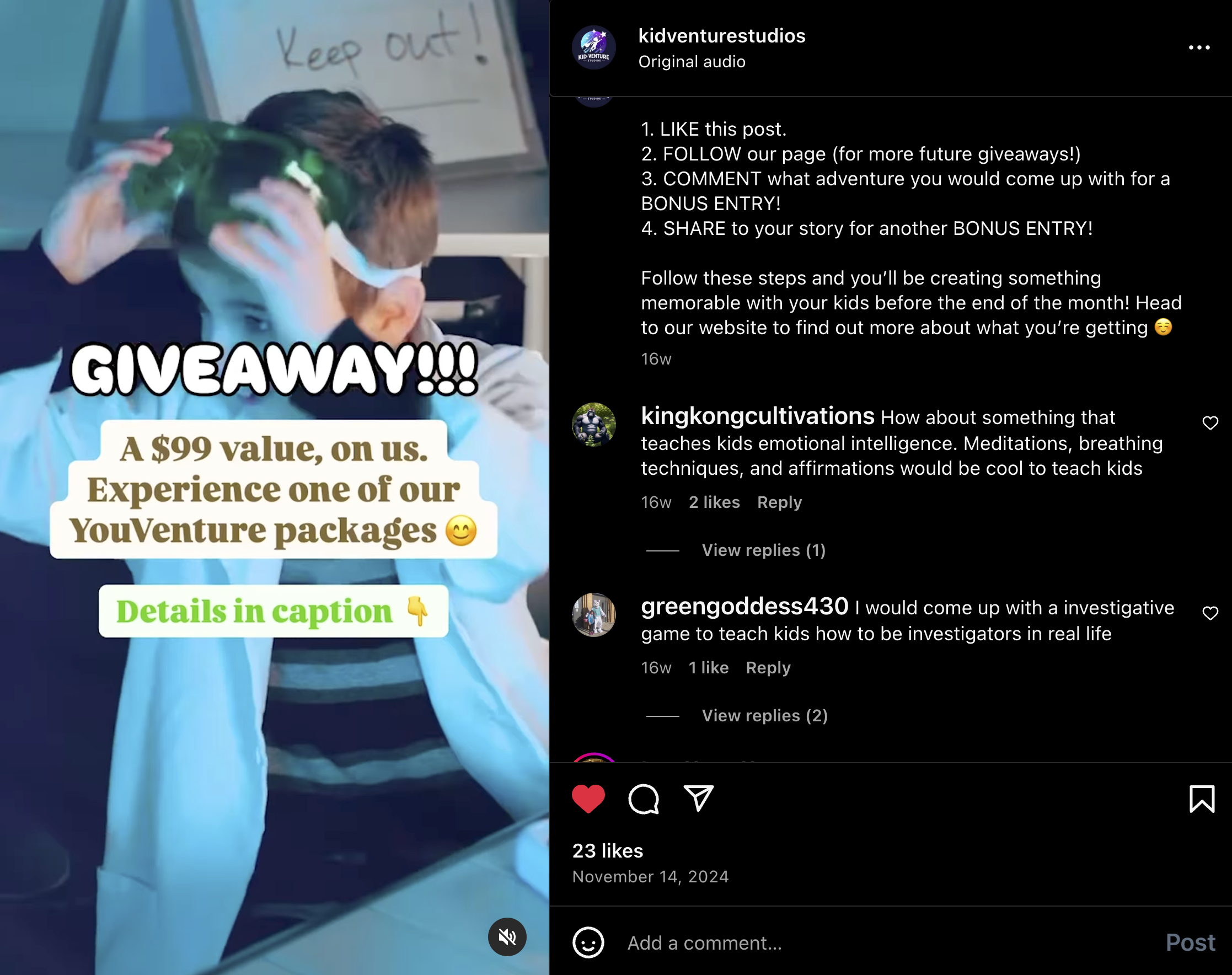 Content Creation & Design: Working with a limited asset library, I edited and produced reels and graphic posts using Premiere Pro, CapCut, and Canva. Reels were crafted to resonate with our target audience—parents in the Greater Portland Area, with content showcasing products that would be ideal gifts for kids. Graphics focused on educating parents about the brand’s value, positioning it as a thoughtful, useful gift idea for their children.
