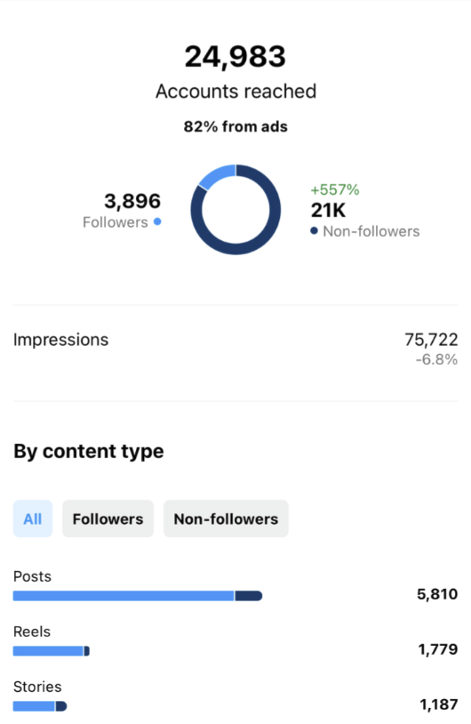 At its core, my role was to apply well-rounded marketing expertise to drive lead generation for the business. By establishing social media workflows, refining content, managing advertising, and collaborating with the team, our efforts resulted in a 67% increase in leads. This was an ideal outcome, as the business’s initial high price point meant success wasn’t dependent on a large following—just a few high-value conversions per month.